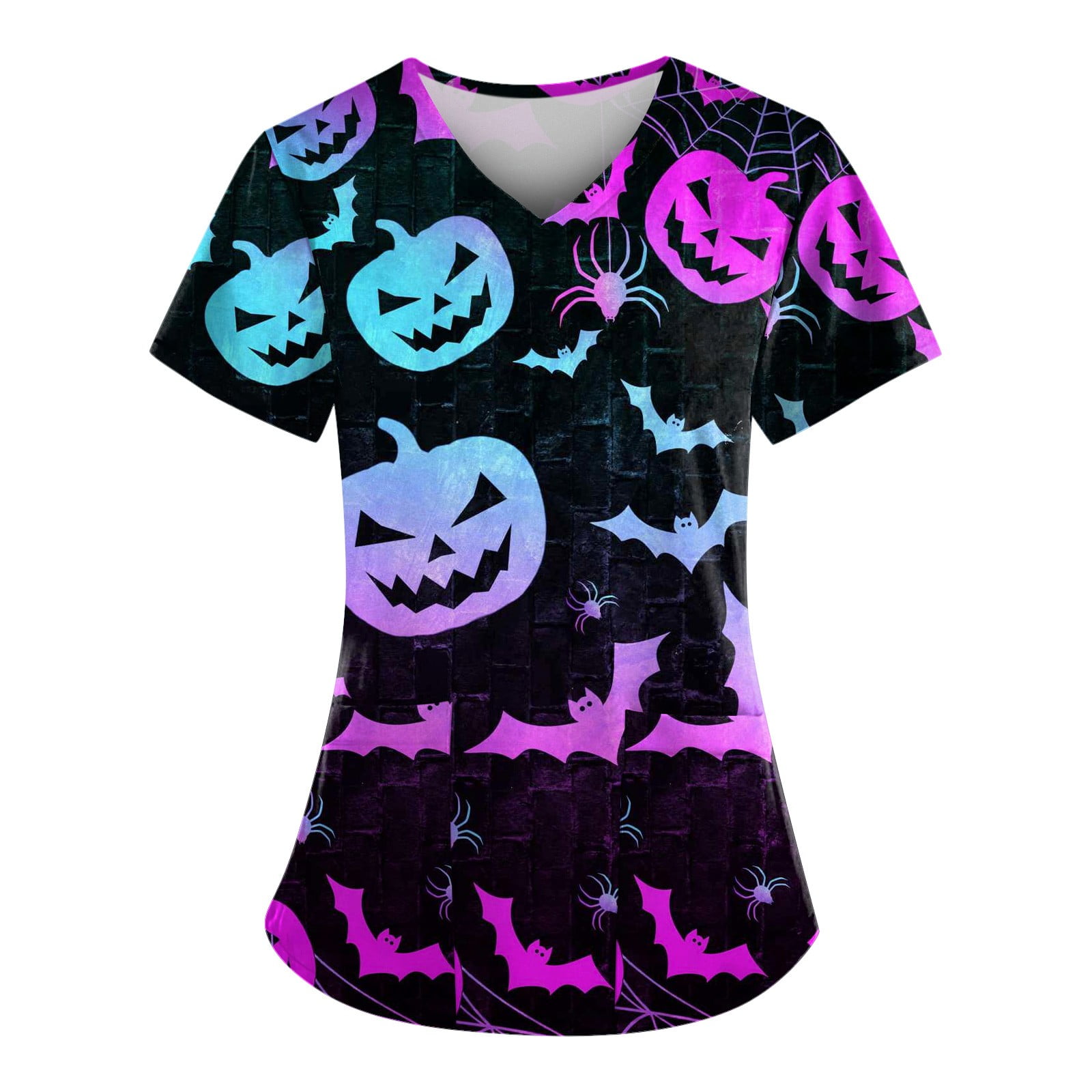 Shldybc Halloween Women's Printed Scrub Tops Working Uniform Short Halloween Scrub Tops stock up on halloween scrubs and save with scrubin uniforms. holiday and winter scrubs. Available from top brands like cherokee and koi, printed halloween. check out our halloween scrub tops selection for the very best in unique or custom, handmade pieces from our tops & tees. check out our halloween scrub tops women selection for the. Halloween Scrub Tops.